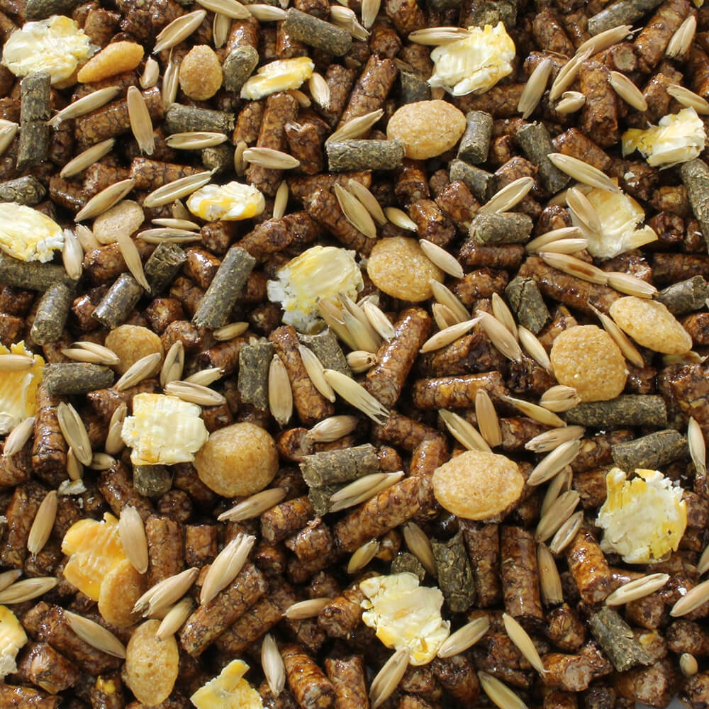 A NUTREHORSE E é uma ração premium multi-partículas para equinos adultos em atividade moderada a intensa. O produto é composto por milho laminado, aveia laminada, alfafa peletizada, extrusado, melaço de cana de açúcar líquido e pellet.