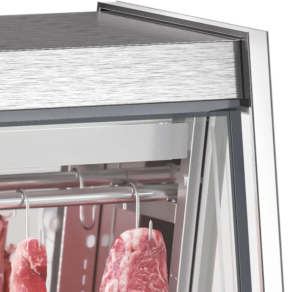 Laterais em aço injetado com pacote de vidro duplo temperado baixo emissivo, parte externa em inox (AI), parte interna aço inox espelhado